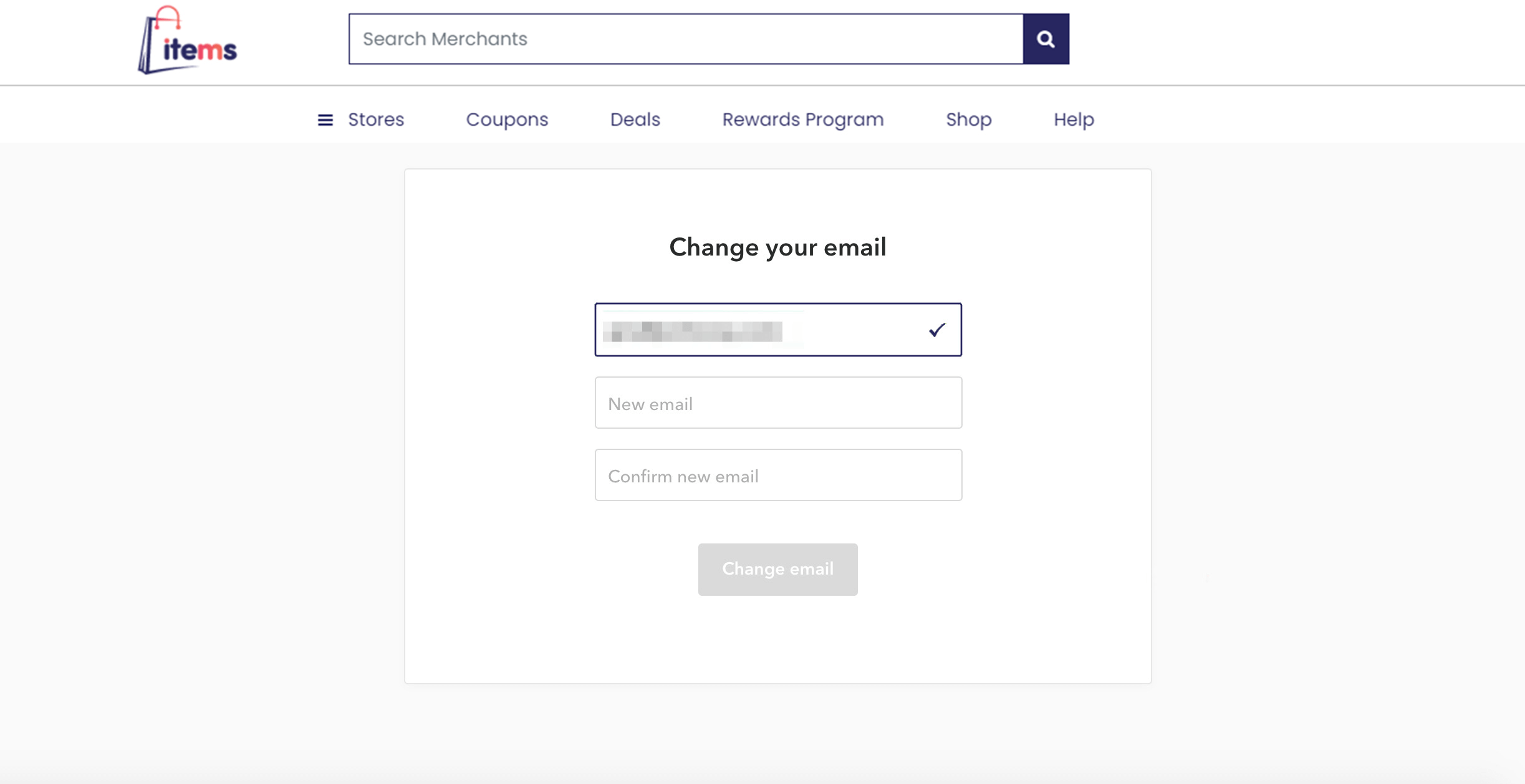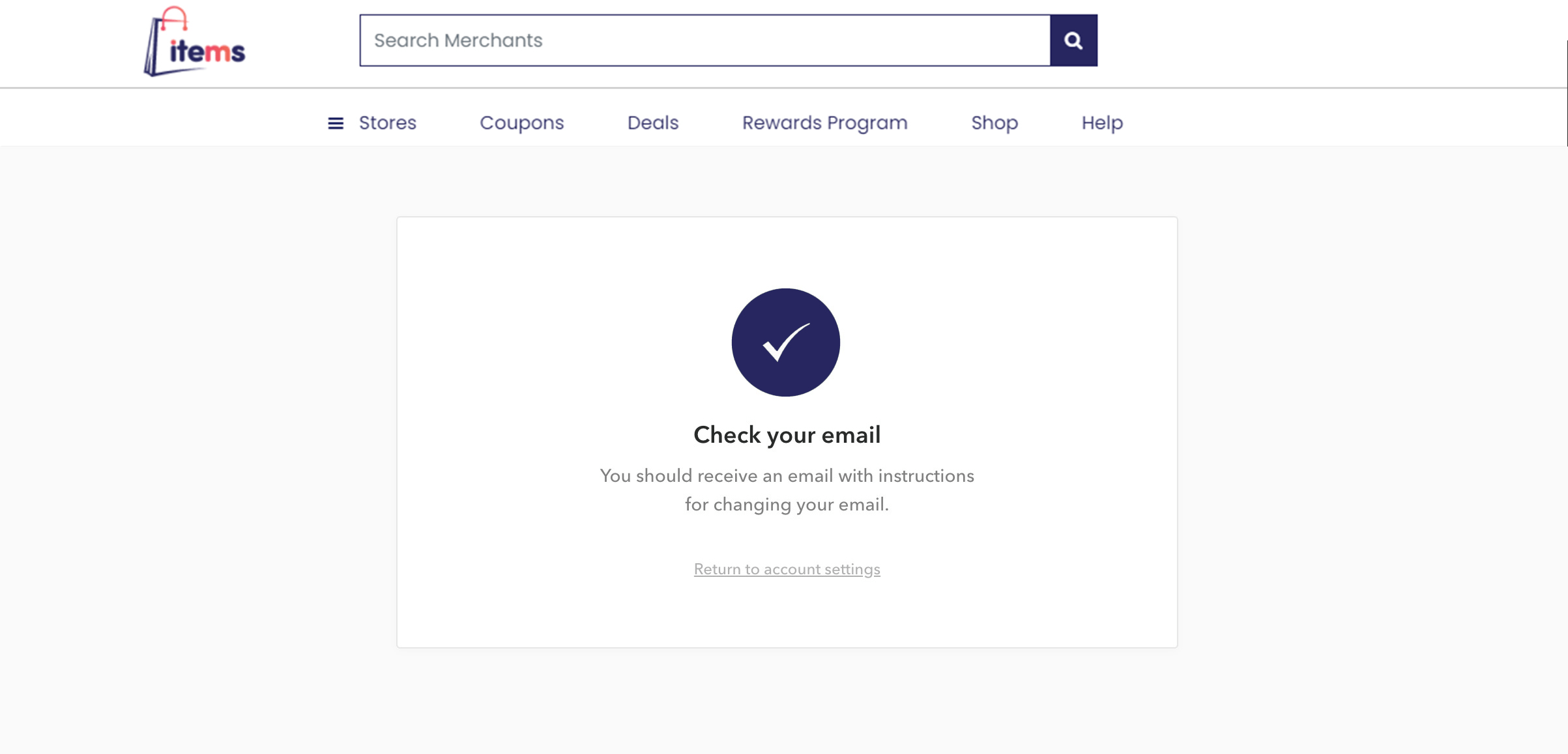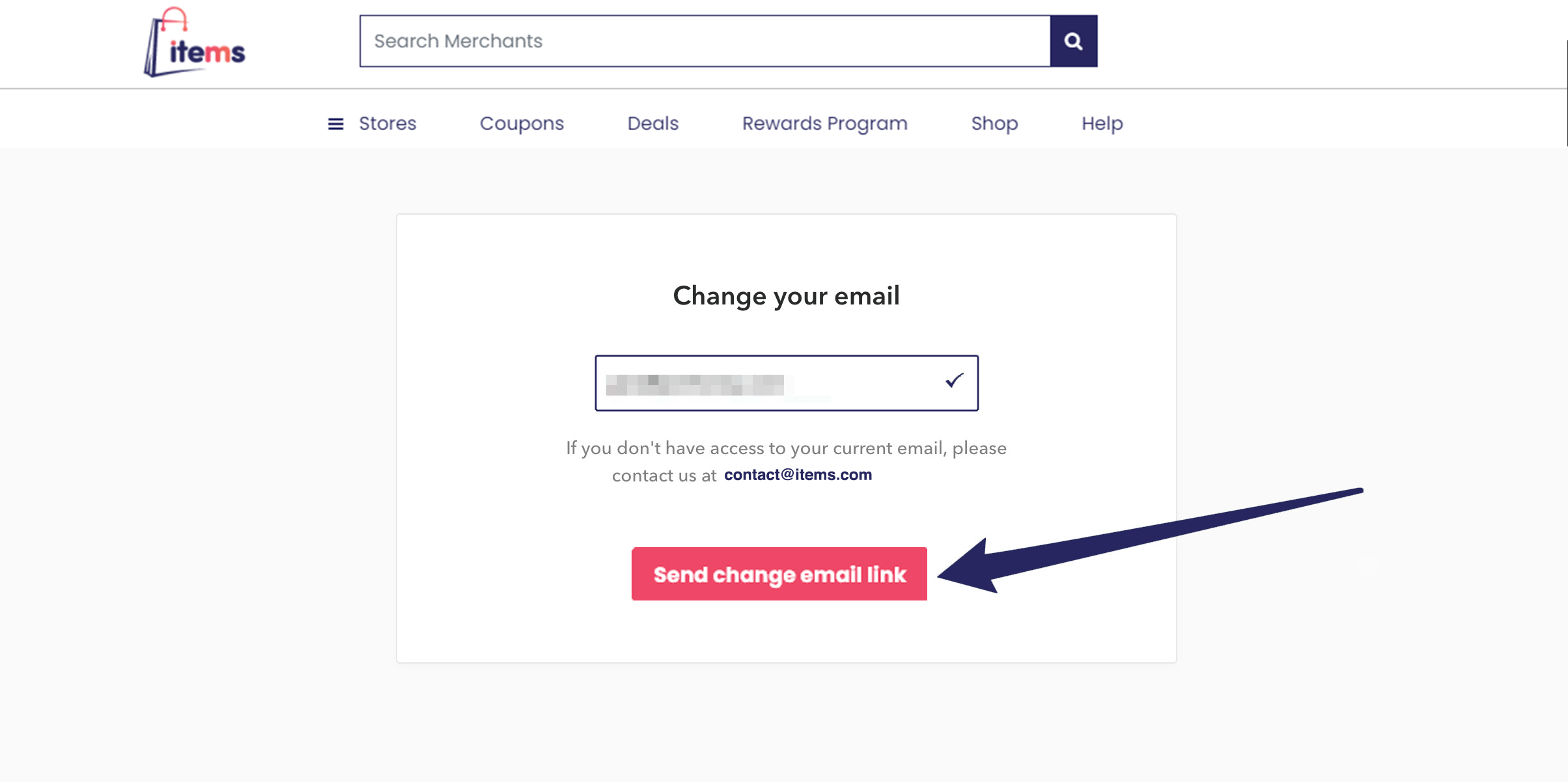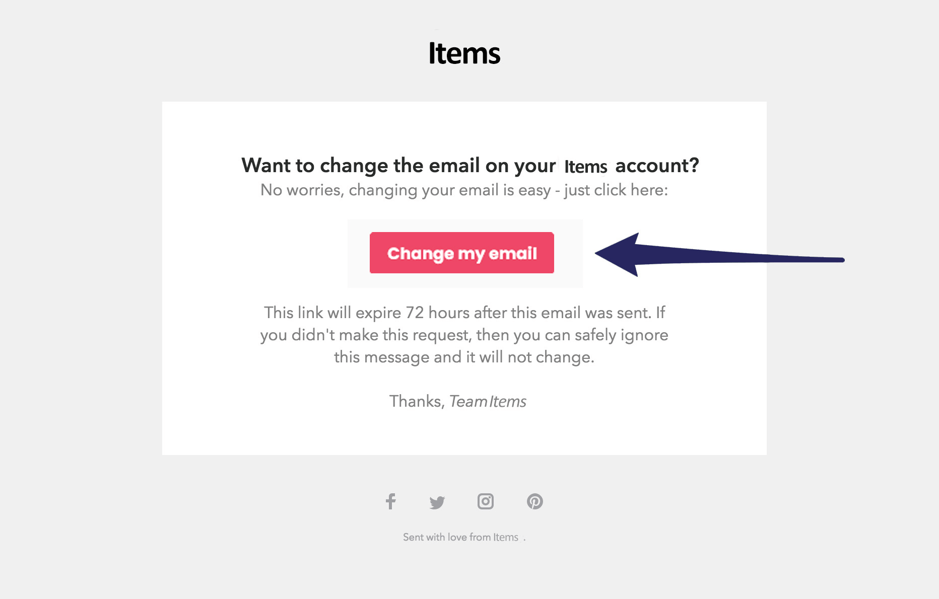 4. After you receive an email from Items, click on Change my email. If you didn’t receive an email, make sure to check your junk and spam folders. If you still don't see it, please reach out to us.