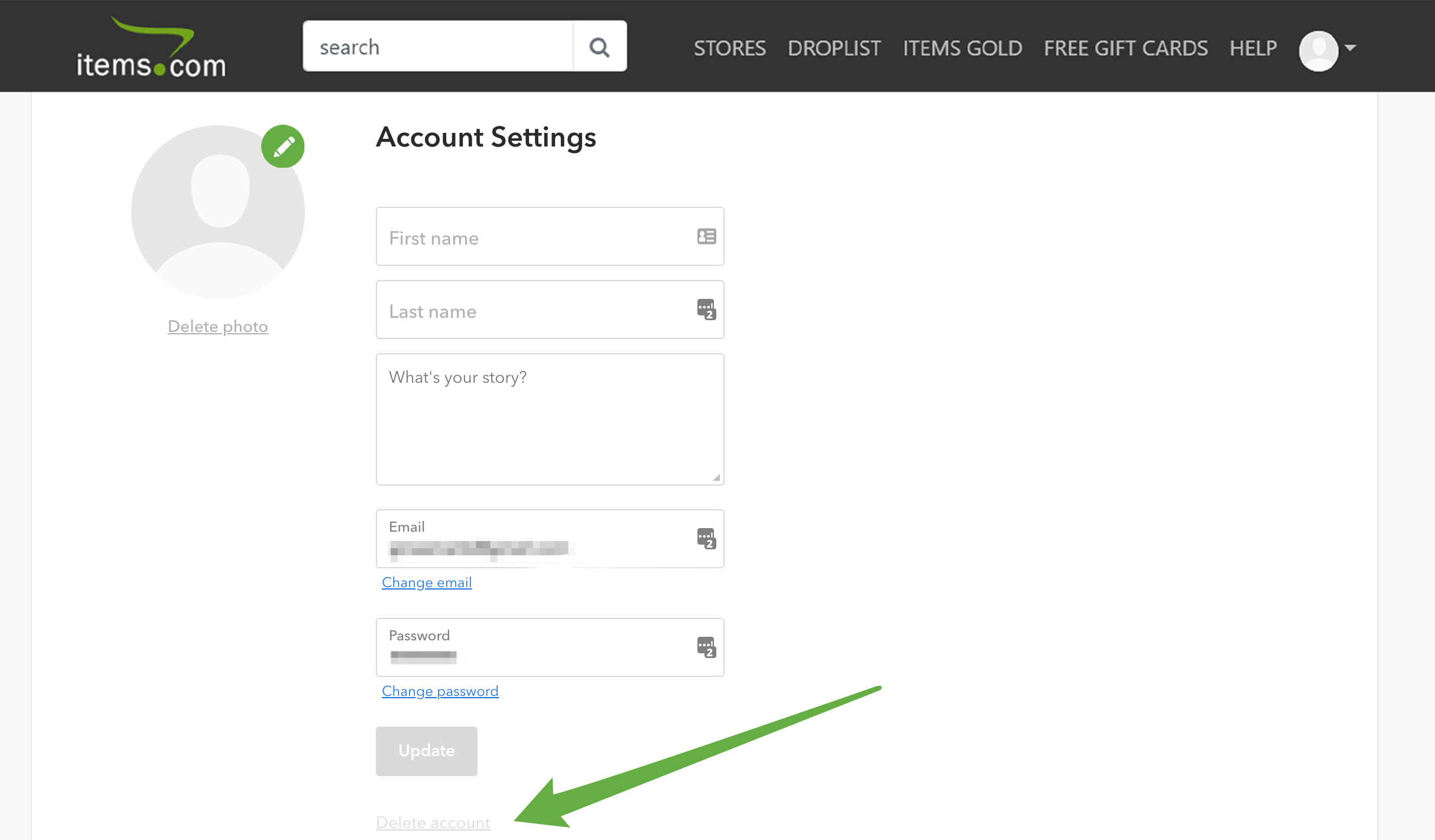 1) Visit your Account Settings page and click on the Delete account link at the bottom of the page
