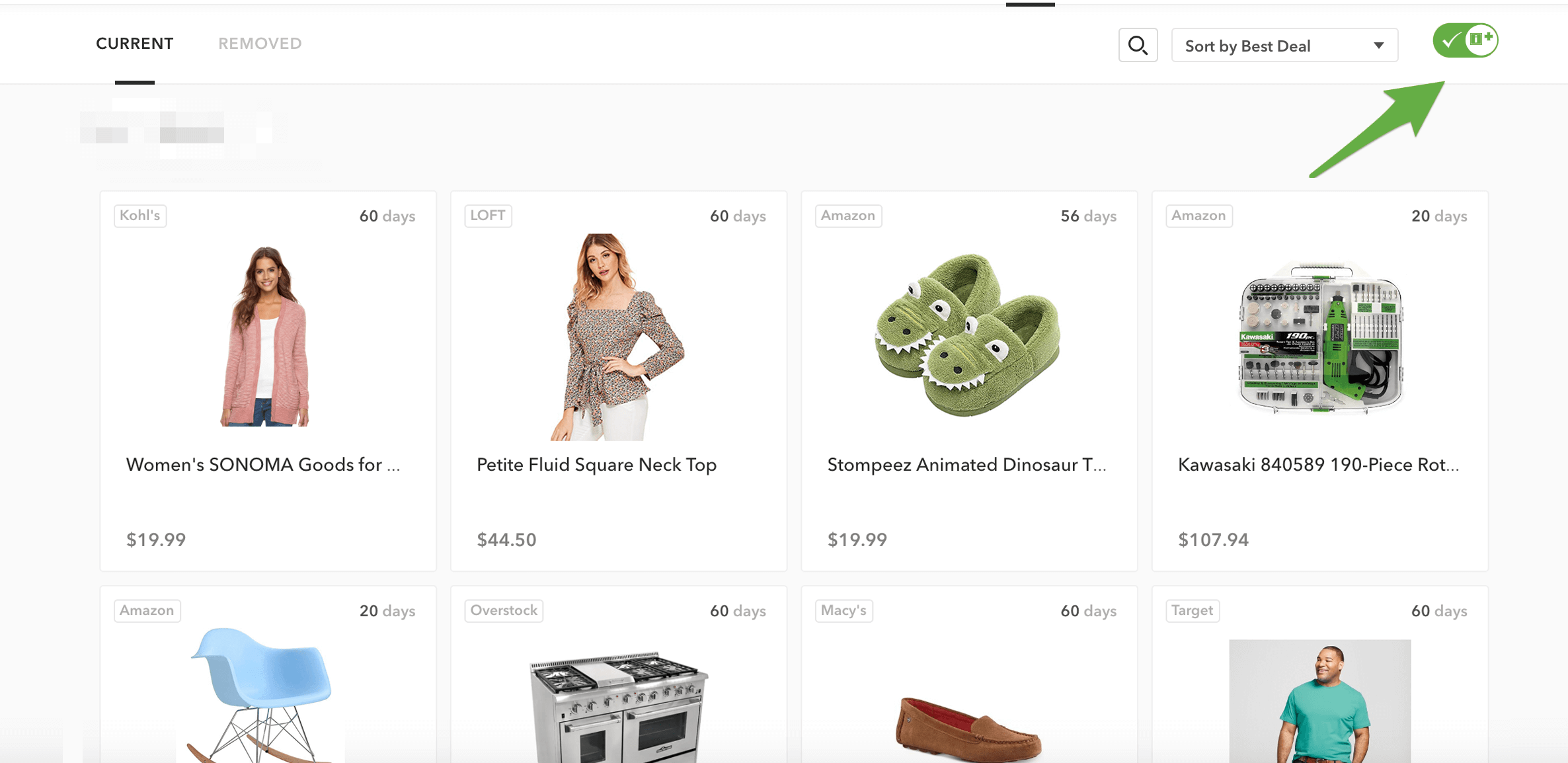 Want to sync your ‘Save for Later’ products from Amazon to Droplist? Just toggle the feature on in the upper right corner of Droplist to activate it. When the button turns green, Amazon ‘Save for Later’ products will start to sync automatically to your Droplist.