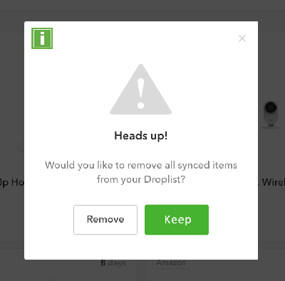 Review all the products on your Droplist to check what you are presently watching, along with the products you have removed.